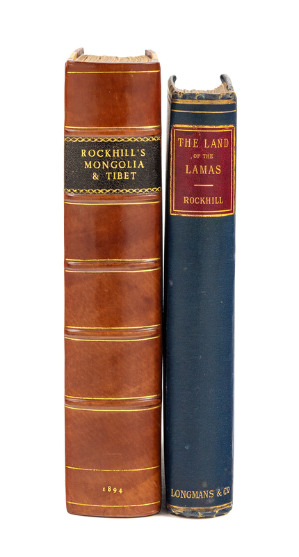 [With:]ROCKHILL. Diary of a Journey through Mongolia and Tibet in 1891, 1892. Washington: Smithsonian Institution: 1894. 8vo. Large, folding map, numerous photogravure plates and in-text illustrations. Tan half calf gilt. FIRST EDITION. Provenance: C. A. Sherring (inscription on first blank: Very Kindly Presented to me by the Author. C. A. Sherring).