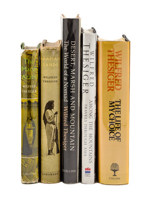 Arabian Sands. London: Longmans, 1959. -- The Marsh Arabs. London: Longmans, 1964 -- Desert, Marsh and Mountain: The World of a Nomad. London: Collins, 1979. -- The Life of My Choice. London: Collins, 1987. -- The Danakil Diary: Journeys Through Abyssinia 1930-34. London: Harper Collins, 1996. -- Among the Mountains: Travels through Asia. London: Harper Collins, 1998. Signed by Thesiger. -- My Life and Travels. An Anthology, Edited by Alexander Maitland. London: Harper Collins, 2002. -- All FIRST EDITIONS, all in original publisher's bindings and dust jackets, condition generally fine.