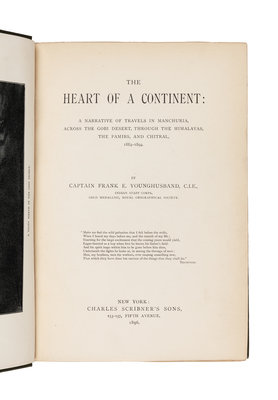 YOUNGHUSBAND, Francis Edward, Sir (1884-1894). The Heart of a Continent: A Narrative of Travels in Manchuria, Across the Gobi Desert, T