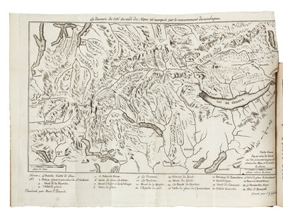 2 volumes, 8vo (194 x 115 mm). Folding engraved map, 8 engraved plates. Contemporary French mottled calf, smooth spines gilt, tan calf lettering-pieces gilt (expertly restored at head and foot of spines, covers slightly bowed). FIRST EDITION. Bourrit was in the forefront of Alpine exploration and can be credited with raising public interest in a first ascent of Mont Blanc. He was Precentor of Geneva Cathedral, an "artist, singer, snob and interminable raconteur... and endearing coward [on the peaks] with a genius for self-promotion" (Fleming), calling himself 'Historian of the Alps' and doing all he could to acquaint the public with their beauty. Perret 0658.