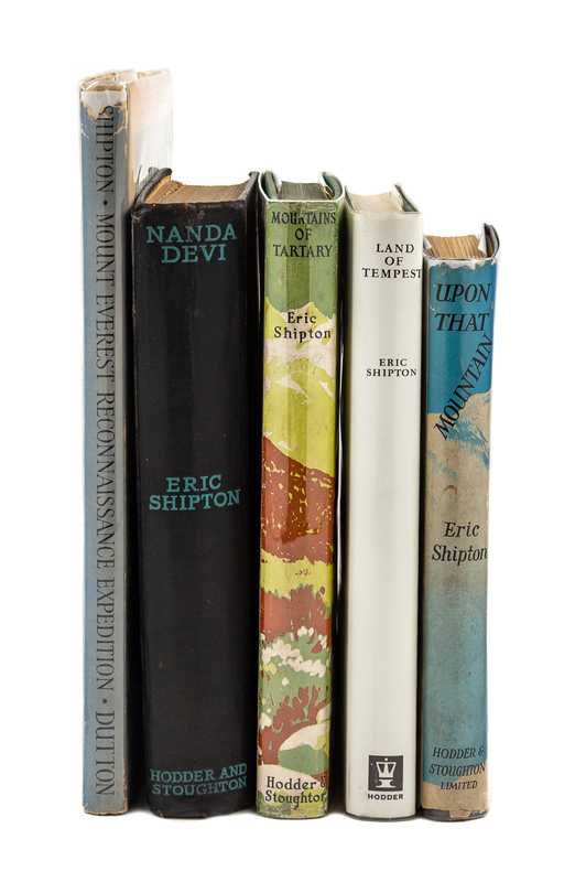 Nanda Devi. London: Hodder & Stoughton, 1936. -- Upon that Mountain. London: Hodder & Stoughton, 1943. -- Mountains of Tartary. London: Hodder and Stoughton, 1951. Publisher's File Copy. -- The Mount Everest Reconnaissance Expedition. New York: Dutton, 1952. -- Land of Tempest: Travels in Patagonia 1958-62. London: Hodder and Stoughton, 1963. -- That Untravelled World: An Autobiography. London: Hodder & Stoughton, 1969. -- Tierra del Fuego: The Fatal Lodestone. London: Charles Knight & Co., 1973. -- Together, 7 works in 7 volumes, all FIRST EDITIONS in original publisher's bindings, condition generally fine.