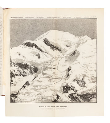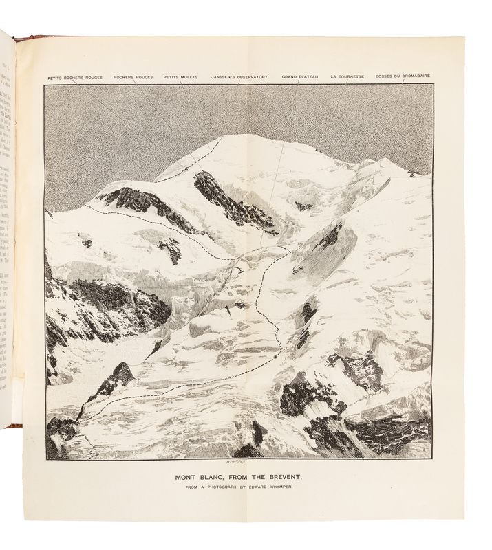 8vo. With folding map, folding plates, numerous plates and illustrations. (Some pale spotting.) Contemporary red morocco gilt by Sizer (spine slightly rubbed). Provenance: A. R. Bellars, Wakefield (signature, 1925); Mrs. Bellars, The Vicarage, Warminster, Wiltshire (bookplate). FIRST EDITION of Whymper's popular guide to Mont Blanc, which provides a survey of early history, summit attempts, and climbing accidents, and which was published annually until 1911. Neate W60. RARE.