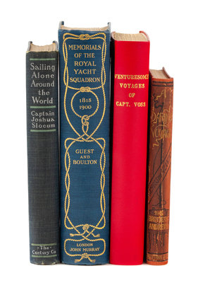 ANDREWS, William Albert (b. 1843). A Daring Voyage Across the Atlantic Ocean. By Two Americans, the Brothers Andrews. The Log of the Voyage... with Introduction and Notes by Dr. Macaulay, Editor of The Boys Own Paper. New York: E.P. Dutton and Co., 1880. 8vo. Title-page vignette, 8 wood-engraved plates and 4 in-text engravings. -- SLOCUM, Joshua (b. 1844). Sailing Alone Around the World. New York: Century Co., 1900. 8vo. -- GUEST, Montague John (1839-1909); BOULTON, William B., editor. The Royal Yacht Squadron. London: John Murray, 1902. 8vo. Gravure frontispiece and numerous plates. -- VOSS, John Claus (1858-1922). Venturesome Voyages of Capt. Voss. Yokohama: Japan Herald Press, 1913. 8vo. Frontispiece portrait, 2 maps, and numerous plates. -- All FIRST EDITIONS, all in original publishers cloth, condition generally good.