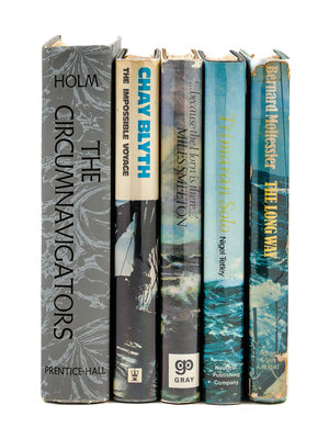 BLYTH, Chay. The Impossible Voyage. London: 1971. -- HOLM, Donald. The Circumnavigators. Small Boat Voyagers of Modern Times. New Jersey: 1974. -- MOITESSIER, Bernard. The Long Way. St. Albans, Herts.: 1974. -- SMEETON, Miles. Because the Horn is There. British Columbia: 1970. -- TETLEY, Nigel. Trimaran Solo: The Story of Victress' Circumnavigation and Last Voyage. London: 1970. -- And 8 others. Together, 13 works in 13 volumes, most FIRST EDITIONS, most in original publisher's bindings, condition generally fine, complete list available on request.
