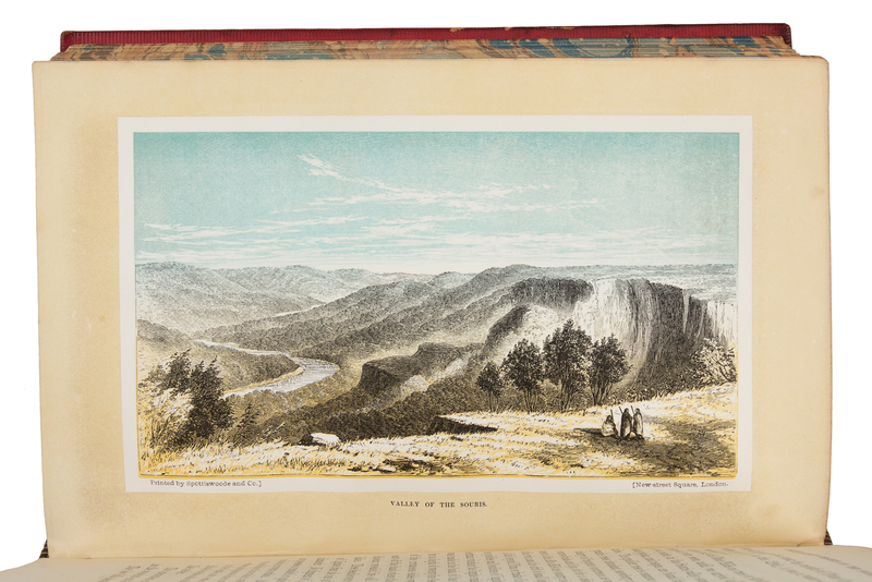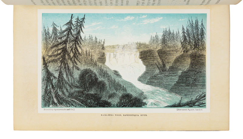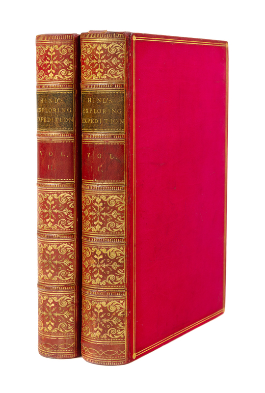 2 volumes, 8vo. With 8 maps and plans (3 folding) & 20 chromoxylographic plates. (First and last few leaves with light spotting.) Contemporary crimson calf gilt. Provenance: Constantine Rodney W. Herney (Eton prize inscription).FIRST EDITION, describing Hind's expedition, which was prompted by the need to discover land access to the gold fields of British Colombia, and during which he "lived almost constantly among the Crees and Chippeways, whose habits and peculiarities he was most eager to study, and prompt to record" (Sabin). Graff 1892; Sabin 31934; Streeter sale 3730; TPL 3820; Wagner-Camp 360.