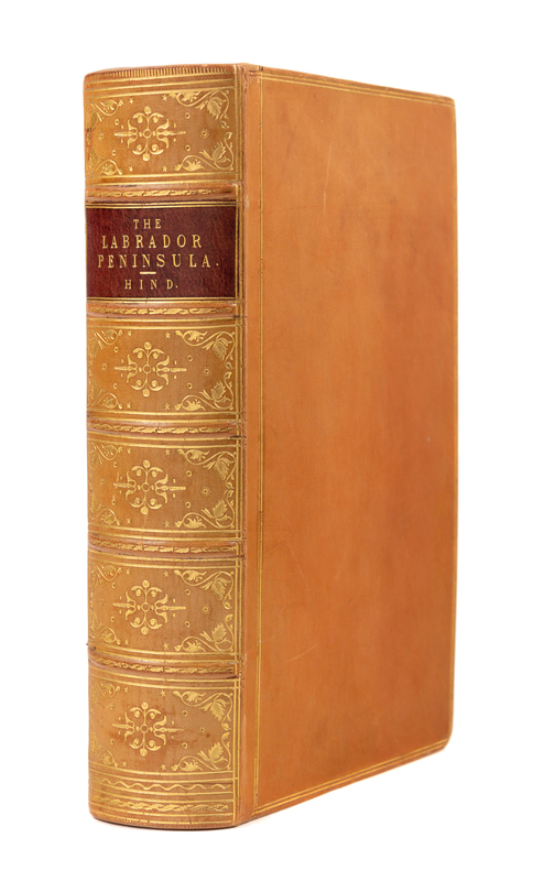 2 volumes in one, 8vo. With 2 folding maps & 12 chromolithographic plates. (Some light spotting to pre- and post-lims, light offsetting from plates.) Contemporary polished calf gilt, marbled edges. Provenance: Ellen Marole? (prize inscription); H. Wartenweiler (signatures). FIRST EDITION describing Hind's expedition exploring Labrador and its river system, "almost entirely occupied with incidents of Indian life and character, particularly of the Montagnais, Abenakis, and Esquimaux." Arctic Bibliography 7105; Sabin 31933; TPL 4069.