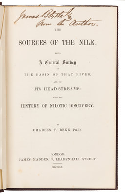 BEKE, Charles Tilstone (1800-1874). The Sources of the Nile. London: James Madden, 1860. FIRST EDITION, PRESENTATION COPY.