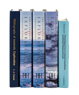 CONRAD, L.J. Bibliography of Antarctic Exploration: Expedition Accounts from 1768 to 1960. Washougal, Washington: 1999. -- HOWGEGO, Raymond John. Encyclopedia of Exploration. Potts Point, Australia: 2005. 3 volumes (of 5) comprising 2 copies of vol. I and one copy of vol. III. -- HEADLAND, Robert K. Chronological List of Antarctic Expeditions and Related Historical Events. Cambridge: 1989. -- NEATE, W.R. Mountaineering and Its Literature. A descriptive bibliography of selected works published in the English language, 1744-1976. Seattle: 1980. -- TOY, Ernest W. Adventurers Afloat. A Nautical Bibliography: A Comprehensive Guide to Books in English... of Amateur Sailors... in Yachts, Boats, and Other Devices and Including Works on the Arts and Sciences of Cruising, Racing, Seamanship, Navigation, Design, Building, etc. ... New Jersey: 1988. 2 volumes. -- And 8 others. Together, 13 works in 17 volumes, most FIRST EDITIONS, most in original publisher's bindings, all in very fine condition, complete list available on request.