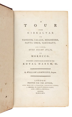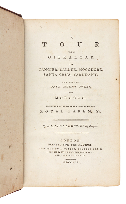 LEMPRIERE, William (d. 1834). A Tour from Gibraltar to Tangier, Sallee, Mogodore, Santa Cruz, Tarudant; and thence, Over Mount Atlas, t
