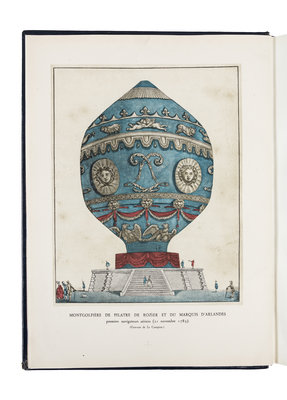 Folio. With 20 color plates (4 tipped to heavy paper), and 70 sepia plates. Original publisher's blue cloth gilt (gilt lettering faded). Provenance: John M. Crawford (Note describing a flight made from Burghausen on 9 July 1974.)FIRST EDITION. A comprehensive photographic and textual history tracing the developments in the history of flight, superbly illustrated with numerous historic photographic illustrations.