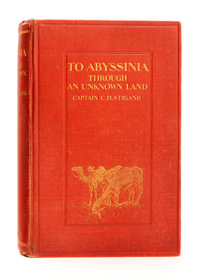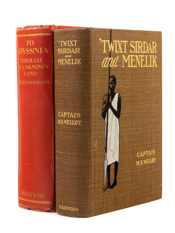 [With:]STIGAND, Chauncey Hugh (1877-1919). To Abyssinia Through an Unknown Land. London: Seeley & Co., 1910. 8vo. Numerous photographic plates, 2 maps (one color-printed and folding). Publisher's decorated orange cloth gilt. FIRST EDITION.