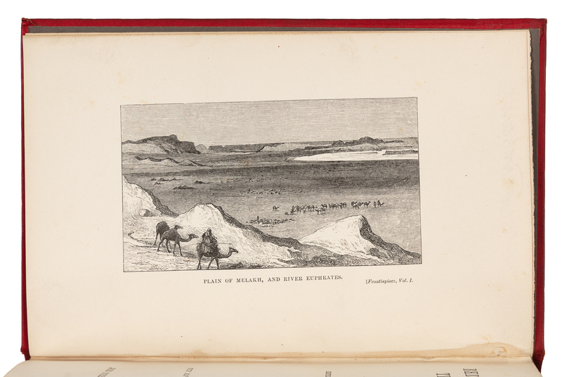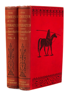 2 volumes, 8vo. With folding color-printed route map, 12 plates after the author's drawings, and a folding pedigree at end. (Light spotting to pre- and post-lims.) Original publisher's red cloth gilt (spines slightly sunned). Provenance: Abraham and Marcie Kanner (bookplate). FIRST EDITION of Blunt's first desert expedition in 1877-78, from Beirut to Baghdad through the Syrian Desert and Mesopotamia. Lady Anne Blunt was the granddaughter of Lord Byron and the wife of the famous Arab scholar and poet Wilfrid Scawen Blunt ("W.S.B."). The couple travelled extensively in Arabia and the Middle East from the late 1870s normally mainly without guides or the usual caravans. During this period Lady Anne became fluent in Arabic and she gained insights into the people and their customs. Her journals give a comprehensive view of desert life and this work remains one of the best late- 19th century books on the Bedouin of Syria. Along with the preface, her husband contributed the final chapters on Bedouin politics, the Arab horse and the planned Euphrates Valley Railway. A FINE COPY.