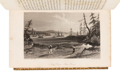 8vo. With folding route map & 16 engraved or lithographed plates. (Frontispiece, title-page, map & some plates browned, light offsetting of plates to text.) Contemporary calf prize binding, with gilt arms of Rugby School on upper cover (rear hinge cracked). Provenance: J. White, Rugby School, Warwickshire (prize inscription, binding, prize bookplate removed).FIRST EDITION of "one of the fundamental books on Arctic exploration." Back covered over 7500 miles, 1200 of which were previously unknown territory. His narrative holds literary esteem and is "full of details about the Cree, Chippewa, Coppermine Indians, and other tribes, upon whom members of the exhibition were obliged to depend during a terrible winter" (Hill). Arctic Bibliography 851; Field 63; Hill 42; Sabin 2613; Streeter sale 3704; TPL 1873; Wagner-Camp 58b:1.