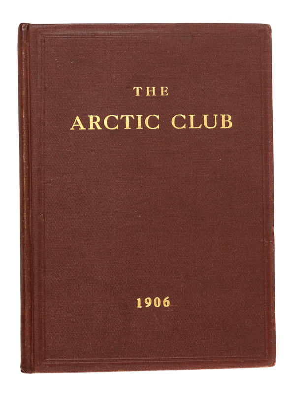 8vo. With frontispiece & portrait plates. Publisher's original brown cloth gilt. FIRST EDITION. The Arctic Club was founded in 1898 and disbanded in 1913, when the Explorers Club absorbed its remaining members. It was formed in 1894 on board the 'Portia' which returned the survivors of Frederick Cook's 1894 Arctic expedition. They had first sailed in the 'Miranda' to visit Peary's Greenland Expedition but wrecked on a reef. Initially, members of the club were limited to those who had sailed in 'Miranda', but expanded to include such notable Arctic explorers as the Duke d'Abruzzi, D. Brainard, A. Fiala, Gerlache de Gomery, Greely, Grinnell, Lecointre, G. W. Melville, Nansen, Nordenskjold and others. Brewer served as its first president. Its mission, according to the Arctic Club Manual of 1906, was "encouraging arctic exploration and of promoting this good cause in a variety of ways," in particular by organizing dinners and reunions for explorers to socialize. The manual includes an introduction on the club and the voyage of the 'Miranda', followed by a list of members and their polar exploits, a chronological list of Arctic and Antarctic expeditions, and memorials to deceased members. Not in Arctic Bibliography. RARE.