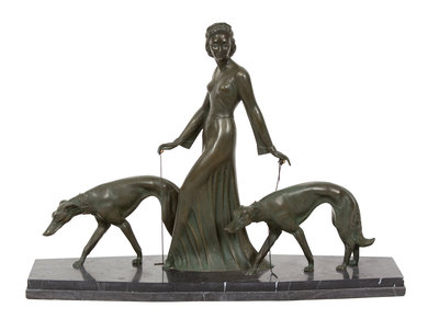 Salvatore Melani, (Italian, 1902-1934), Woman with Greyhounds
