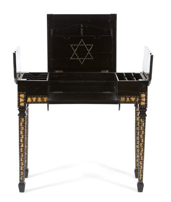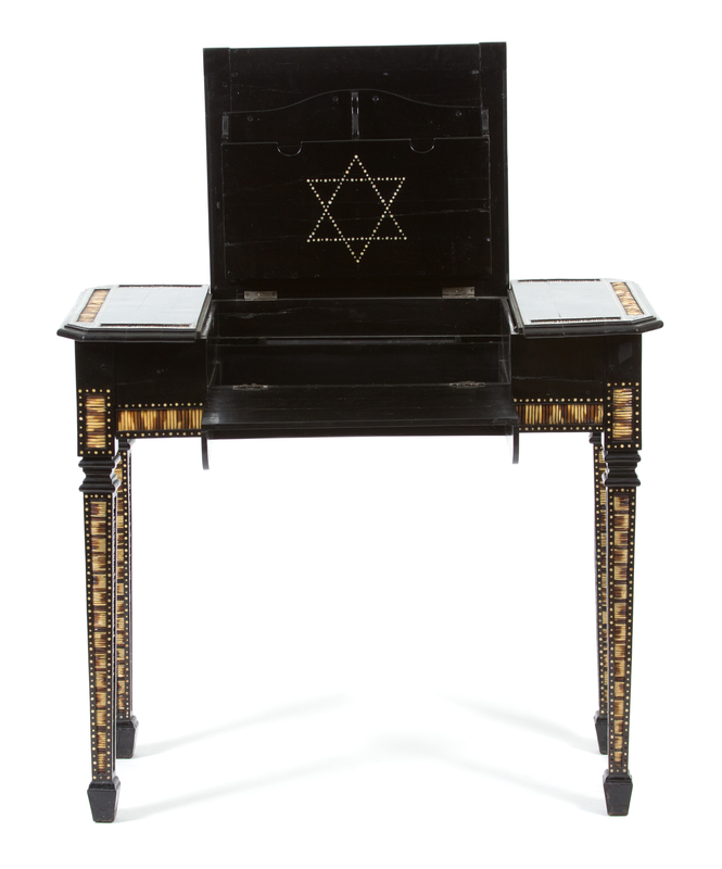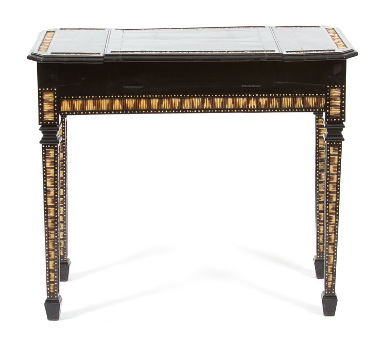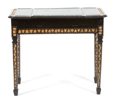 A Ceylonese Ebony and Porcupine Quill Console Table Height 30 x width 35 x depth 17 1/2 inches.
