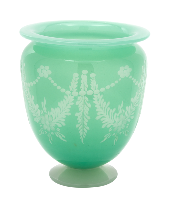A Steuben Acid Cut-Back York Pattern Jade and Alabster Glass Vase Height 9 1/4 inches.