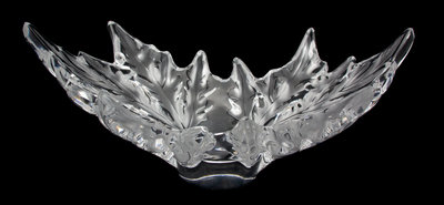 A Lalique Molded and Frosted Glass Champs Elysees Bowl Height 7 1/2 x width 17 3/4 inches.