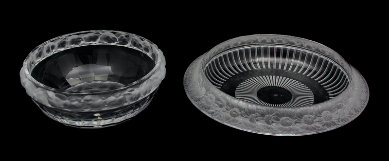 Two Lalique Molded and Frosted Glass Bowls Diameter of larger 14 3/4 inches.