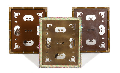 comprising a pair with bamboo design, and one with green enamel decoration.
