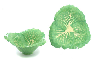 A Dodie Thayer Three Leaf Lettuceware Bowl and Charger Height of bowl 6 x diameter 11 1/2 inches.