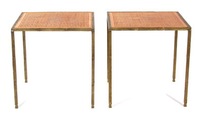 A Pair of Contemporary Gilt Bronze Side Tables Height 25 1/4 x squared diameter 24 1/2 inches.