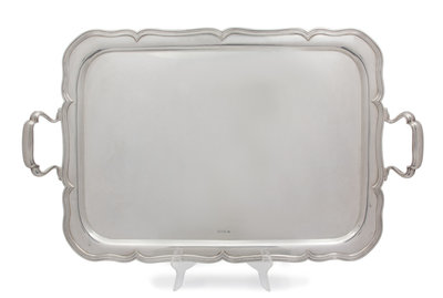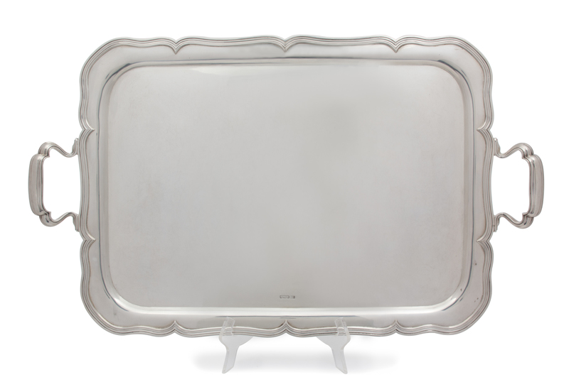 An English Silver Two-Handle Serving Tray, Atkin Brothers, Sheffield, 1911, having a reeded scalloped border