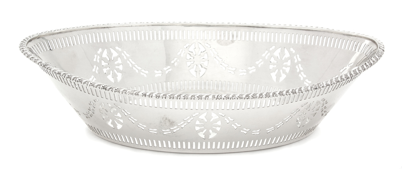An English Silver Reticulated Oval Bread Basket, Barker Bros. Silversmiths, Ltd., 1913,