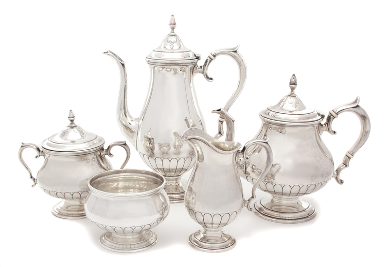An American Silver Five Piece Tea Service, Towle, Newburyport, MA, 20th Century, comprising a tea pot, a coffee pot, a covered sugar bo