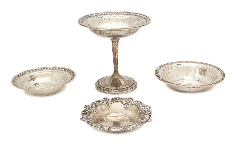 A Group of Four American Silver Articles, Various Makers, comprising a footed compote with weighted base, and three bowls