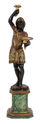 A Venetian Polychrome and Gilt Decorated Blackamoor Height 66 inches.