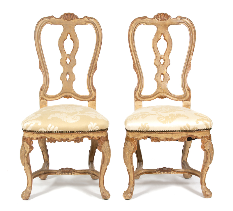 A Set of Twelve Italian Rococo Style Painted Dining Chairs Height 42 1/2 inches.