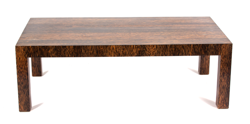 A Pair of Palm Tree Veneered Coffee Tables Height 20 x width 72 x depth 48 inches.