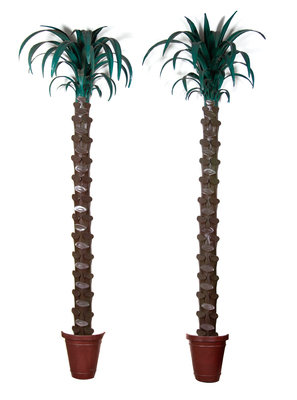 A Pair of Italian Tole Paint Wall Mounted Palm Trees Height 102 inches.