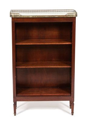 A Louis XVI Style Marble Top Mahogany Biblioteque Height 38 3/4 x width 24 x depth 9 inches.