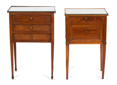 Two Louis XVI Style Fruitwood Side Tables Height 29 23/4 x width 19 3/4 x depth 13 1/2 inches.