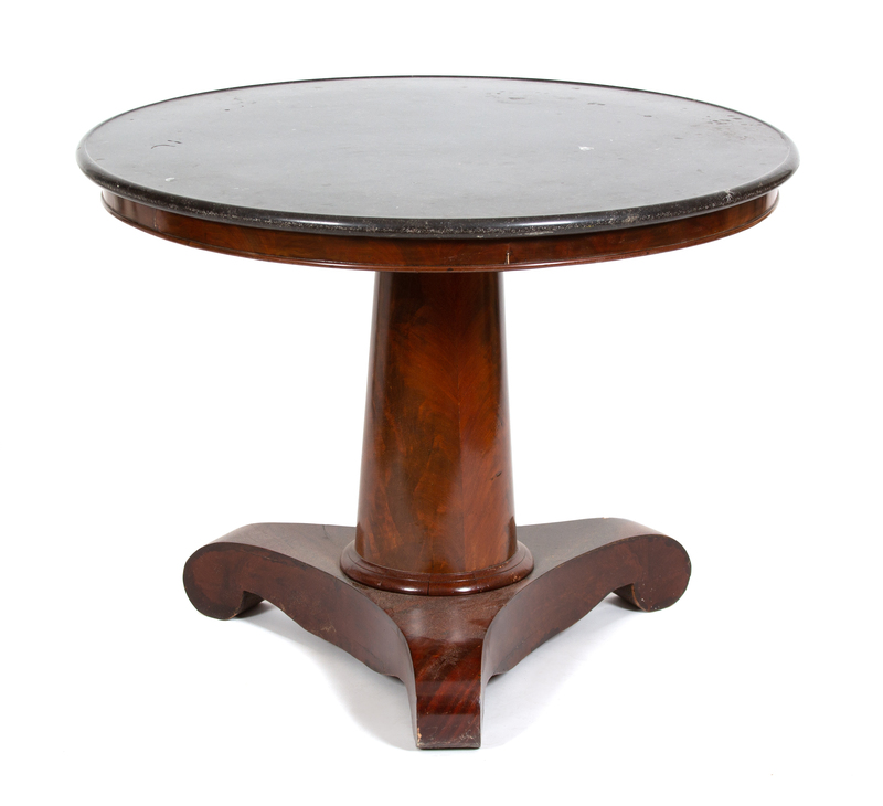 A Napoleon III Mahogany Marble Top Table Height 29 x diameter 38 1/4 inches.
