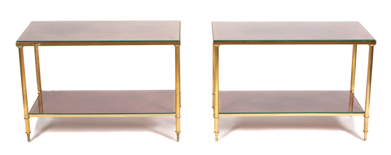 A Pair of French Gilt Bronze End Tables Height 21 1/2 x width 32 x depth 15 3/4 inches.