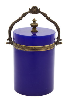 A French Blue Opaline Glass Covered Jar Height 8 1/2 inches.