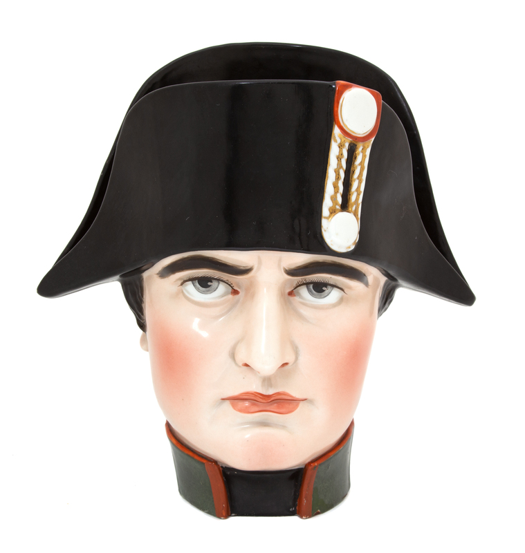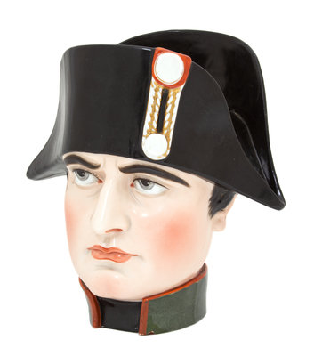A Large Polychromed Porcleain Napoleon Head Tobacco Jar Height 7 1/2 inches.