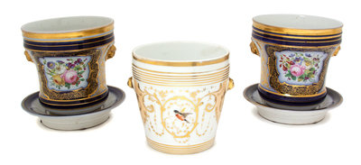 Four Pieces of Paris Porcelain Largest height 8 x diameter 6 inches.