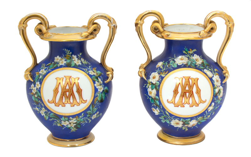 having polychromed floral banding around a white roudel with gilt monogram AM.