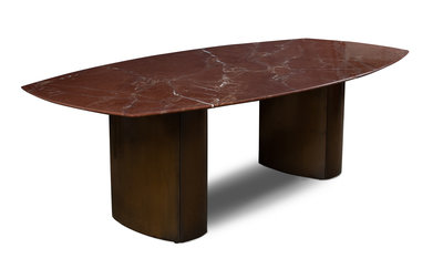 A Knoll Rouge Marble Top Dining Table Height 29 1/2 x length 97 1/2 x depth 50 inches.