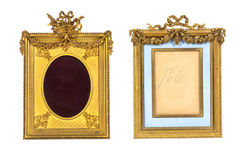 Two French Gilt Bronze Easel Back Frames Height of taller 9 3/4 x width 7 inches.