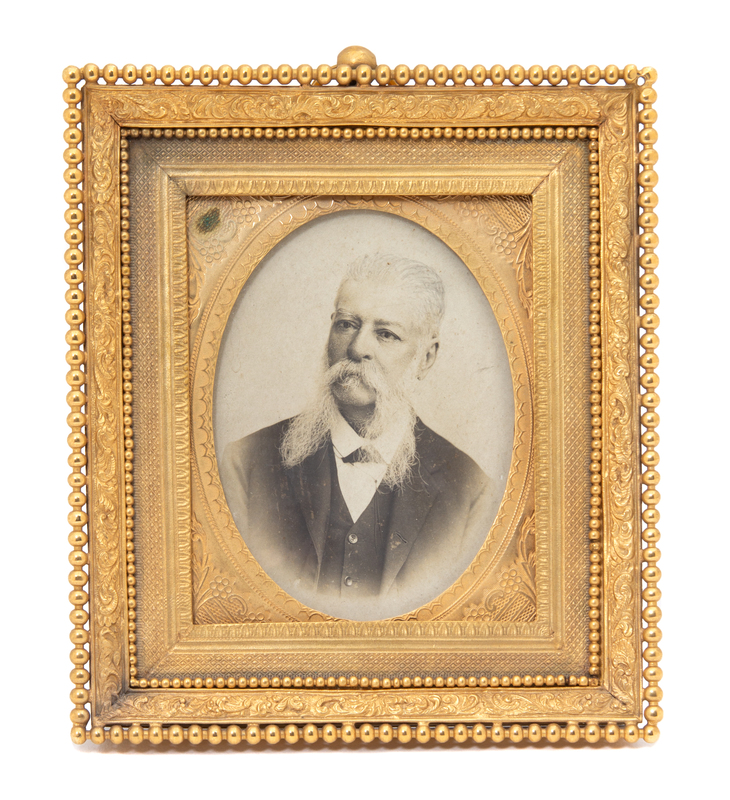 A French Chased Gilt Metal Easel Back Picture Frame Height 5 3/4 x width 5 1/8 inches.