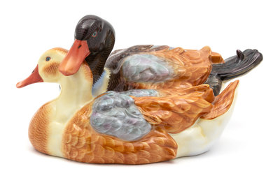 A Herend Porcelain Figure of a Pair of Ducks Height 6 x width 7 x length 11 1/2 inches.