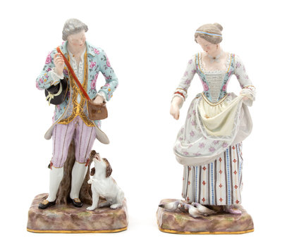 A Pair of Meissen Porcelain Figures Height 10 inches.