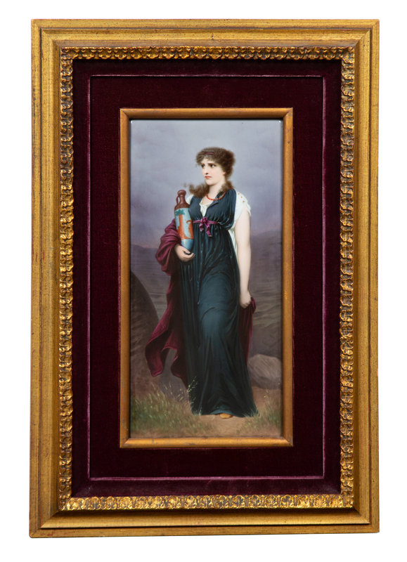 A KPM Plaque of Woman with Vase Height 12 x width 5 3/4 inches.