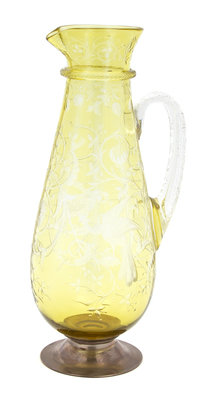 A Bohemian Yellow Cut-to-Clear Glass Ewer Height 11 inches.