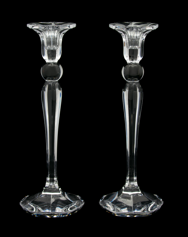 A Pair of Villeroy & Boch Crystal Candlesticks Height 11 inches.